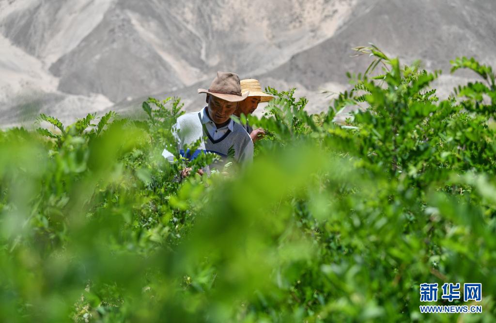 山南市貢嘎縣吉雄鎮(zhèn)劉瓊村村民在檢查樹苗生長(zhǎng)情況(6月2日攝)。新華社記者 晉美多吉 攝