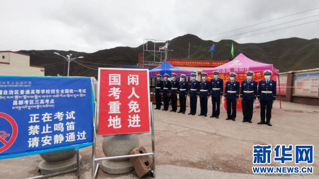 消防員在西藏昌都市卡若區(qū)高考考點(diǎn)維持秩序(6月8日攝)。新華網(wǎng)發(fā) 洛松旺修攝