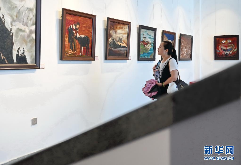 6月12日,市民在福州三坊七巷參觀唐卡漆畫。新華社記者 林善傳 攝