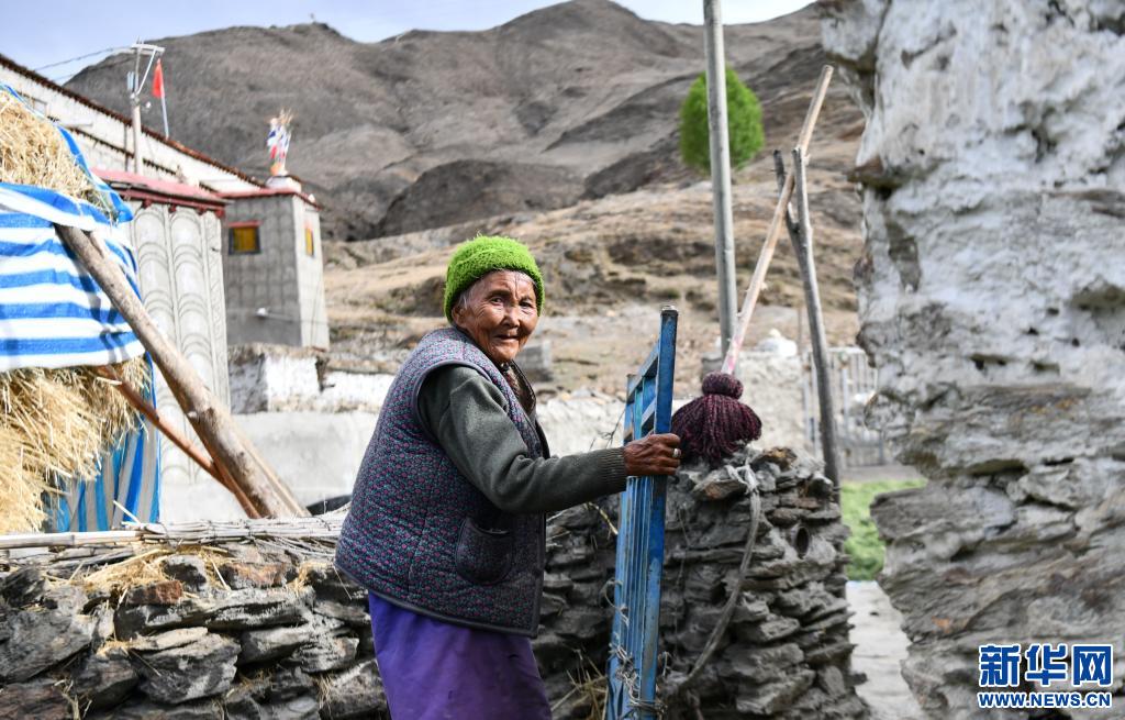 次仁央宗老人關(guān)上家里牲圈的門(6月3日攝)。新華社記者 普布扎西 攝