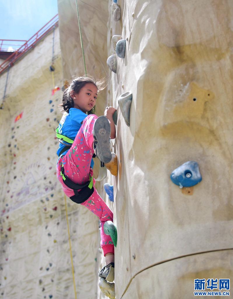 2017年5月,全運(yùn)會群眾性項目西藏攀巖資格賽在拉薩舉行,圖為少年組小選手丹喬央宗在攀爬。新華社記者 晉美多吉 攝