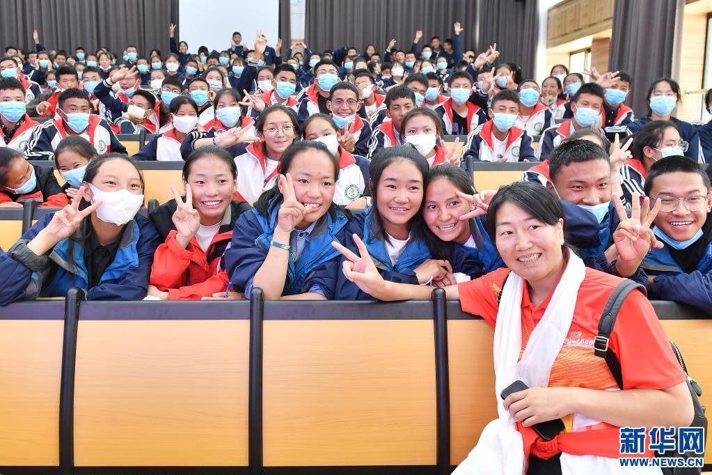當(dāng)日,高敏攜西藏和平解放以來首個(gè)競技體育世界冠軍、摔跤運(yùn)動(dòng)員西洛卓瑪和成功登頂七大洲最高峰并徒步到達(dá)南北極點(diǎn)的西藏登山運(yùn)動(dòng)員德慶歐珠走進(jìn)拉薩市阿里高級(jí)中學(xué)。該校在校學(xué)生均來自距拉薩超過1000公里的阿里地區(qū)。由于當(dāng)?shù)貧夂驐l件惡劣,交通不便,學(xué)校遷往拉薩,讓許多高海拔偏遠(yuǎn)地區(qū)的學(xué)生享受到了更優(yōu)質(zhì)的教育條件。
