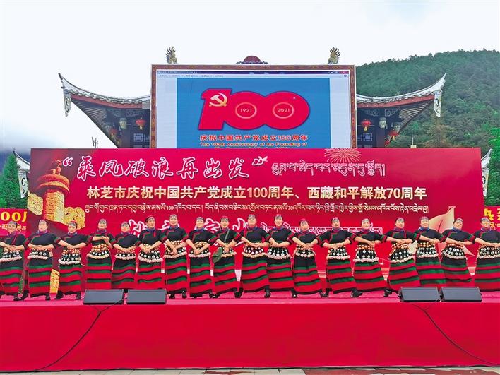 近日,“乘風(fēng)破浪再出發(fā)”——西藏自治區(qū)林芝市慶祝中國共產(chǎn)黨成立100周年、西藏和平解放70周年獻(xiàn)禮演出在福建公園隆重舉行。演出通過歌舞、情景表演、相聲、團(tuán)體操等形式,表達(dá)了各族人民感黨恩、聽黨話、跟黨走的真摯情感。