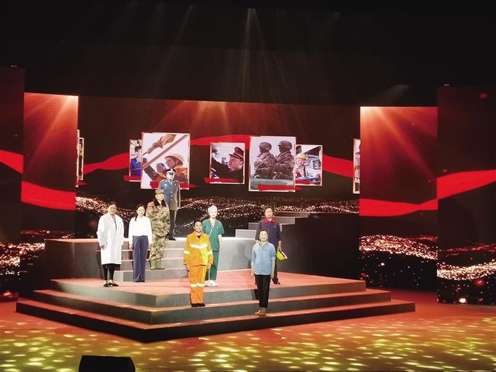 鑄牢中華民族共同體意識(shí),根本是加強(qiáng)共同體的建設(shè),重點(diǎn)是發(fā)揮文化浸潤(rùn)作用。朗誦劇《光輝永頌》用戲劇的方式延續(xù)文化培根鑄魂的精神力量,深情回望西藏在中國(guó)共產(chǎn)黨的領(lǐng)導(dǎo)下,走過(guò)的和平解放、民主改革、建設(shè)西藏和黨的十八大以來(lái)以習(xí)近平同志為核心的黨中央對(duì)西藏的關(guān)心與厚愛(ài)的各個(gè)歷史階段,向?yàn)槲鞑孛篮蒙钭龀鲞^(guò)犧牲與貢獻(xiàn)的無(wú)名英雄以及張國(guó)華、孔繁森、卓嘎央宗姐妹等先鋒模范致敬,向武警、教師、民警、科研工作者、環(huán)衛(wèi)工人等各行各業(yè)、各個(gè)崗位上的堅(jiān)守者和奮斗者致敬,讓觀眾在革命先驅(qū)、愛(ài)崗敬業(yè)的紅色故事中學(xué)習(xí)黨史,堅(jiān)定信念。