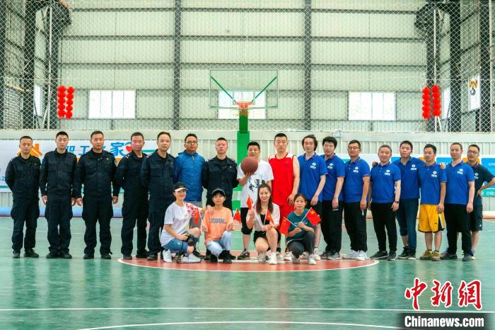 圖為友誼籃球賽后的隊員合影?!〗旁频?攝