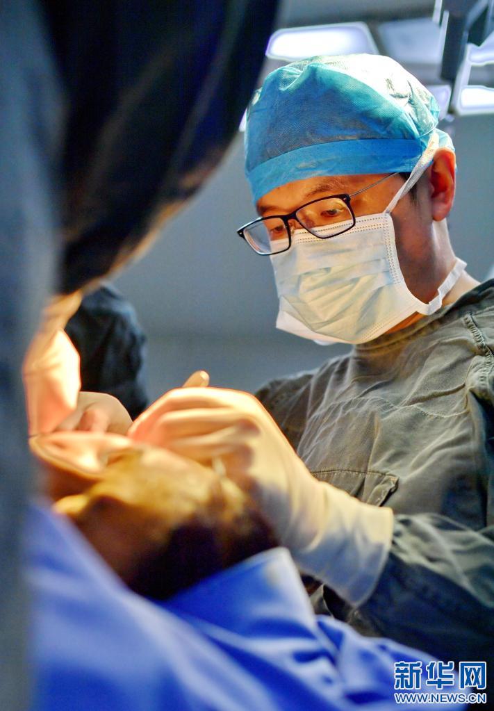 在西藏自治區(qū)人民醫(yī)院手術(shù)室,王克明為面部畸形患者做手術(shù)(5月11日攝)。新華社記者 張汝鋒 攝