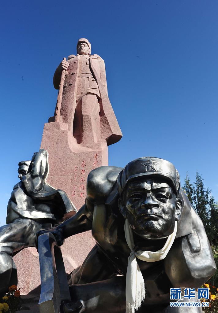 矗立在青海省格爾木市將軍樓公園內(nèi)的慕生忠雕像(2014年9月23日攝)。新華社記者 王頌 攝