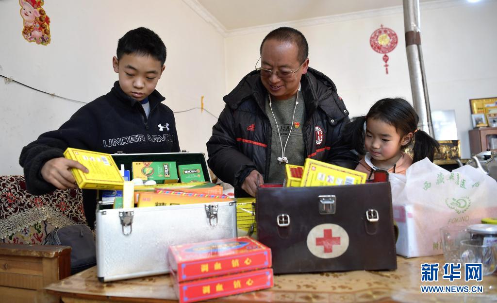 秋加(中)和他的孩子在整理藥箱(2021年1月14日攝)。新華社記者 張汝鋒 攝