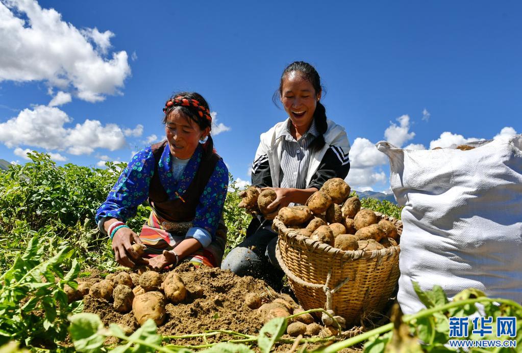 日喀則市桑珠孜區(qū)東嘎鄉(xiāng)祺瑪黨慶現(xiàn)代農(nóng)業(yè)發(fā)展專業(yè)合作社社員在分揀土豆(2018年9月4日攝)。 新華社記者張汝鋒 攝