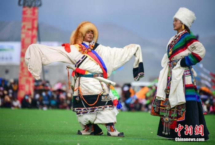 資料圖為西藏自治區(qū)拉薩市當雄縣賽馬節(jié)上的藏族傳統(tǒng)服飾表演。中新社記者 貢嘎來松 攝