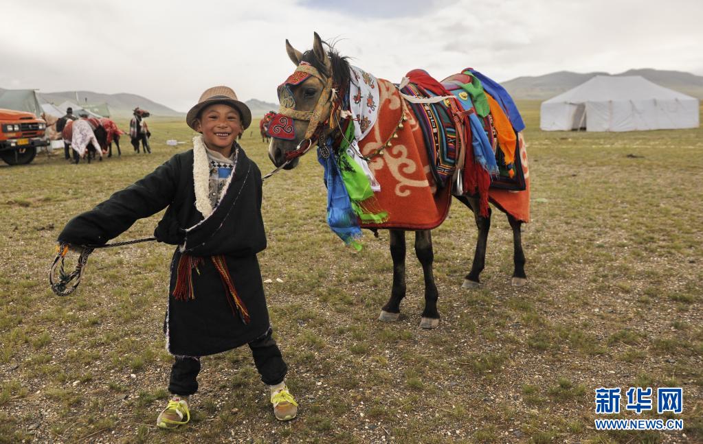 西藏阿里改則縣改則鎮(zhèn)日瑪村一名少年牽馬前行(2018年8月6日攝)。新華社發(fā)(蔡云鋒 攝)