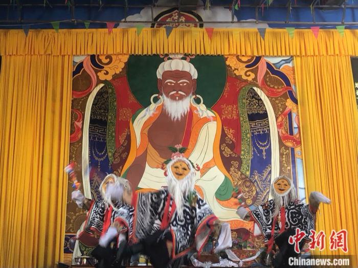 扎西曲登社區(qū)在進(jìn)行雅礱扎西雪巴藏戲表演。 中新網(wǎng)左宇坤 攝