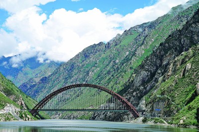 藏木雅魯藏布江雙線特大橋全長(zhǎng)525.1米,主拱跨徑430米。新華社記者 劉洪明攝