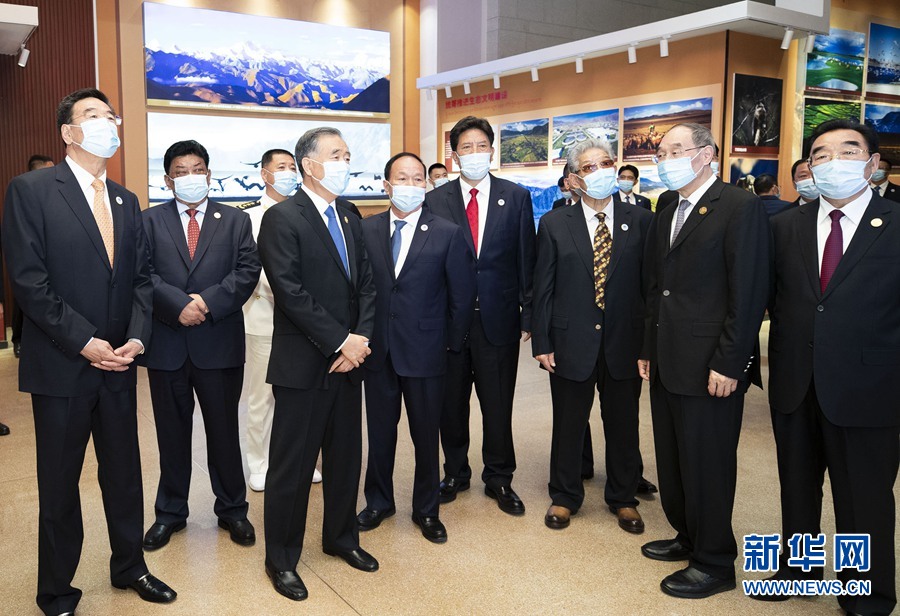 汪洋等走進(jìn)展廳,一邊仔細(xì)觀看展板,一邊認(rèn)真聽取講解?!妒邨l協(xié)議》簽字儀式歷史照片、實(shí)行民族區(qū)域自治制度的展板、對(duì)口援藏資金圖表、《西藏自治區(qū)民族團(tuán)結(jié)進(jìn)步模范區(qū)創(chuàng)建條例》圖片……一塊塊展板、一張張圖片圖表,生動(dòng)展現(xiàn)了70年來西藏在黨的領(lǐng)導(dǎo)下取得的長(zhǎng)足發(fā)展。汪洋不時(shí)駐足觀看,詳細(xì)詢問有關(guān)情況,對(duì)西藏近年來各項(xiàng)事業(yè)取得的成就予以充分肯定。