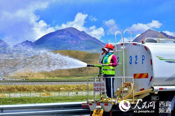 基礎(chǔ)打好了,接下來是種草(花),種的都是更適應(yīng)高原環(huán)境的鄉(xiāng)土草(花)種?!霸诟咴戏N花種草太難了,比照顧孩子還要悉心。剛開始要施肥,讓它們盡快長出根吸收營養(yǎng),現(xiàn)在每天上午、下午都要澆水?!焙笃诠茏o工人周玉娟說。