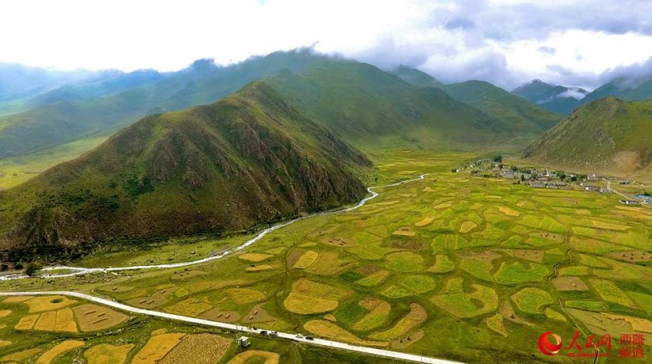 無(wú)人機(jī)鳥瞰青稞田地。人民網(wǎng) 次仁羅布攝