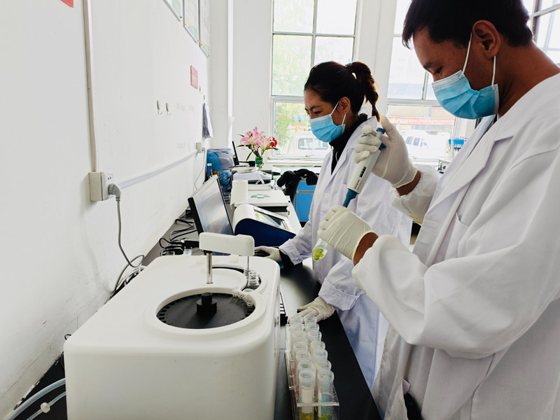 圖為西藏拉薩東嘎農副產品批發(fā)市場快檢實驗室工作人員在對該市場內農副產品進行檢測。記者 央金 攝