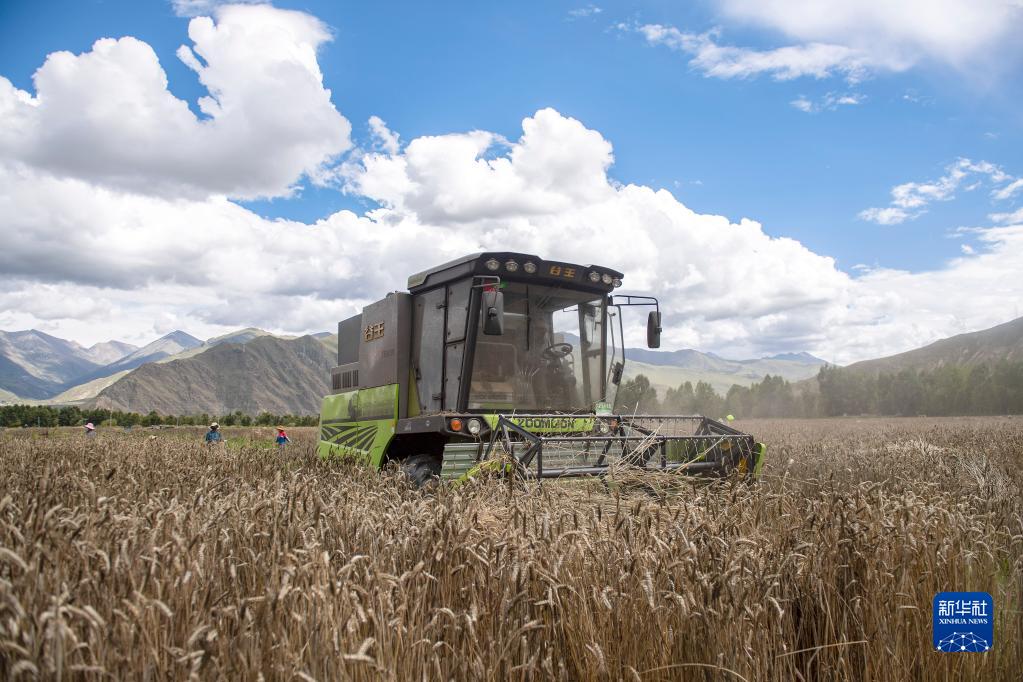 當前正值青稞收獲季節(jié),拉薩河谷一帶農民抓緊收割,農田里一片豐收的繁忙景象。