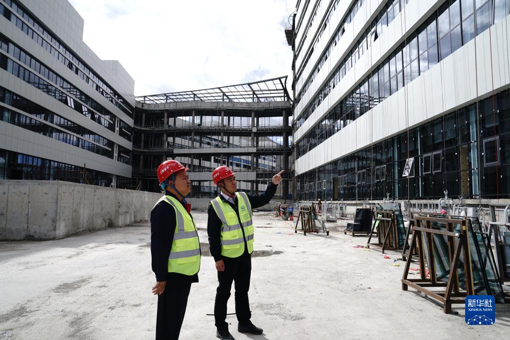 電焊聲和鋼管的碰撞聲此起彼伏,中秋節(jié)前夕,位于拉薩市堆龍德慶區(qū)的西藏自治區(qū)醫(yī)院項目施工現(xiàn)場,500多名工人正進(jìn)行作業(yè)。戴著安全帽走在建筑樓層,時而駐足詢問,34歲的張磊不敢怠慢任何一道工序。