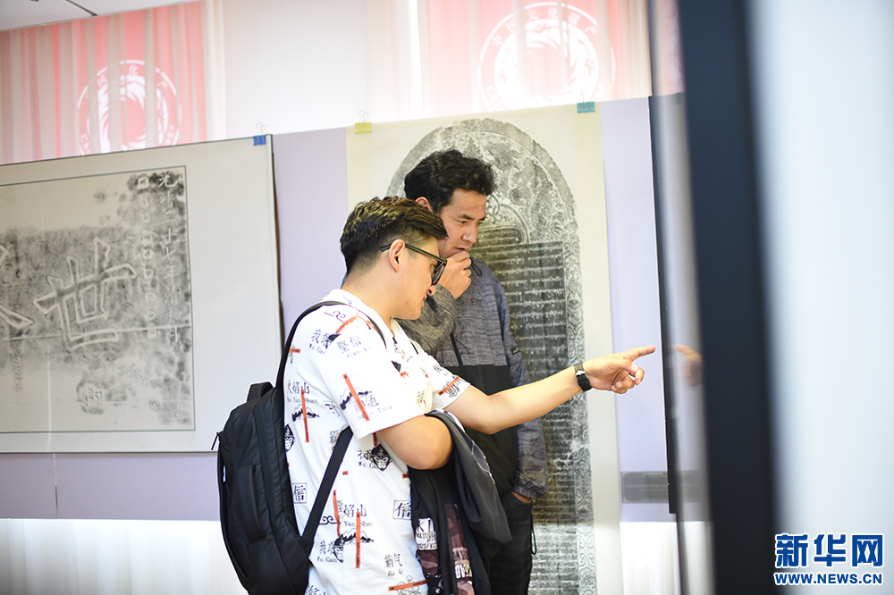 9月29日,在西藏大學(xué)新校區(qū)圖書館,參觀者觀賞石碑拓片內(nèi)容。新華網(wǎng) 旦增努布 攝