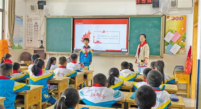 圖為林芝市第二小學(xué)的少先隊(duì)員向同學(xué)們講述紅色故事。記者 張猛 攝