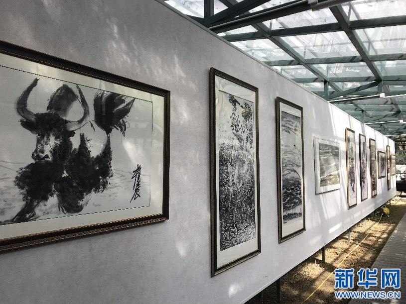 10月3日,在拉丁嘎村鄉(xiāng)村藝術(shù)館開幕的牦牛繪畫展。(受訪者供圖)