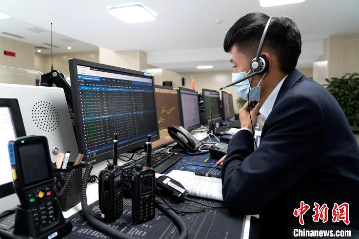 圖為機(jī)場工作人員了解相關(guān)動態(tài)。程征宇 攝