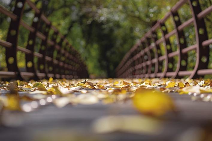 陽光溫暖地包裹著大地,穿過草木,穿過人群,在地上折射出好看的光影。樹木一排排整齊站立著,樹葉時(shí)不時(shí)隨風(fēng)飄落,落在地面,鋪?zhàn)饕坏亟鹕牡靥海腥俗哌^,發(fā)出“沙沙”的聲響,伴著人們的說笑聲,格外動(dòng)聽美妙。