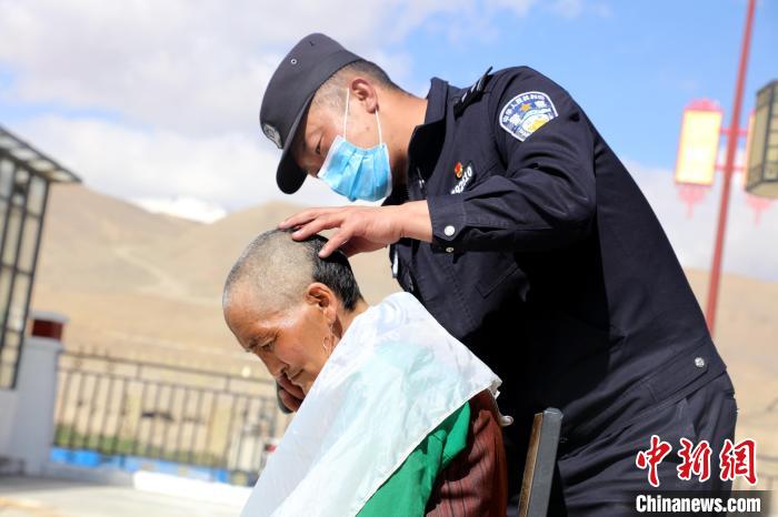 圖為普蘭邊檢站民警為敬老院老人理發(fā)。格熱 攝