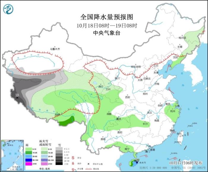 全國降水量預報圖(10月17日08時-18日08時)。(圖片來源:中央氣象臺網(wǎng)站)