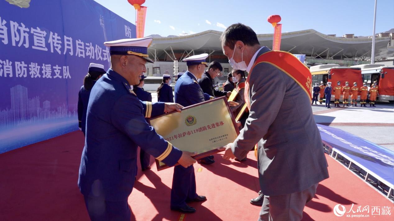 啟動(dòng)儀式上,表彰了2021年度拉薩市“119”消防先進(jìn)集體、先進(jìn)個(gè)人。與會(huì)領(lǐng)導(dǎo)為受表彰的單位及個(gè)人代表頒發(fā)證書(shū)。