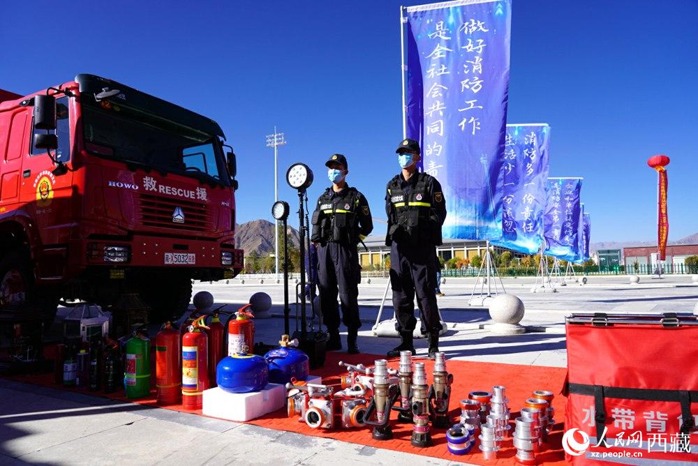 拉薩市2021年“119”消防宣傳月啟動(dòng)儀式現(xiàn)場(chǎng)。人民網(wǎng) 次仁羅布