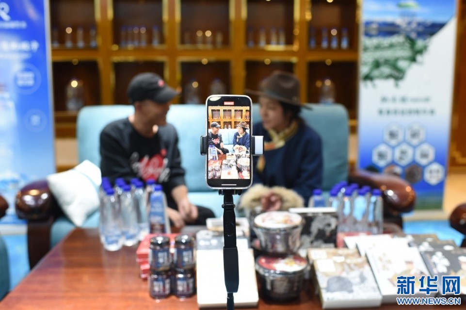 10月30日,“網(wǎng)紅”在直播介紹當雄特色產(chǎn)品。新華網(wǎng) 旦增努布 攝