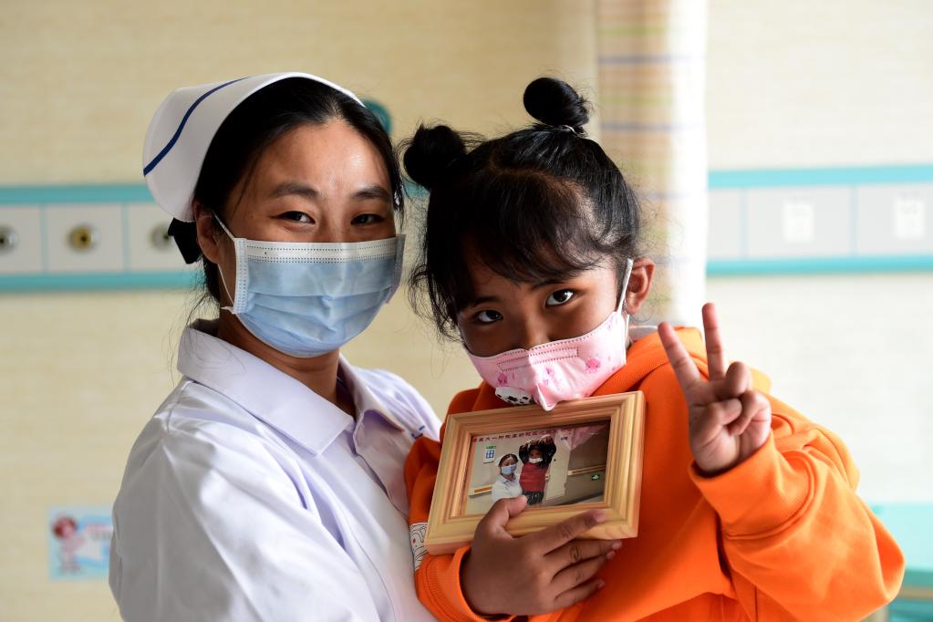 11月2日,歸桑卓瑪(右)在出院前和護(hù)士長(zhǎng)馬寒香合影。黃博涵 攝