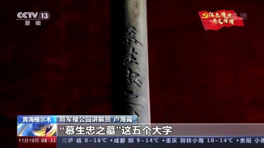 青海省格爾木市將軍樓公園講解員 盧海霞:慕生忠將軍在修建青藏公路的同時,他將自己的生死置之度外,所以在自己的鐵鍬上刻了慕生忠之墓這5個大字。他當時在刻這個字的時候,他就說路修到哪里,如果我犧牲了,那么就把我埋在哪里,它就是我的墓碑。
