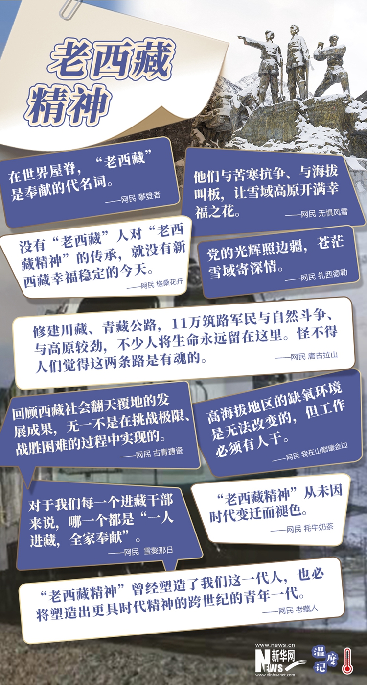 此后的幾十年間,一批又一批、一代又一代援藏干部、駐藏官兵踏上世界屋脊,扎根雪域高原,和當(dāng)?shù)厝罕娨坏?,推動西藏各項事業(yè)又快又好發(fā)展,讓千年雪域高原變了樣,也賦予“老西藏精神”更為豐富的時代內(nèi)涵。“生命在這里很脆弱,生命在這里也很頑強?!本W(wǎng)民們在社交平臺上表達(dá)對雪域高原心向往之的同時,更不忘歌頌歷久彌新的“老西藏精神”。歷經(jīng)時代的變遷,這種精神正在感召并鼓舞更多人,扎根邊疆,造福西藏,讓那里的山水永遠(yuǎn)碧藍(lán)、綺麗,讓那里的土地永遠(yuǎn)充滿希望、幸福花開。(文字:徐可 海報設(shè)計:王曄)