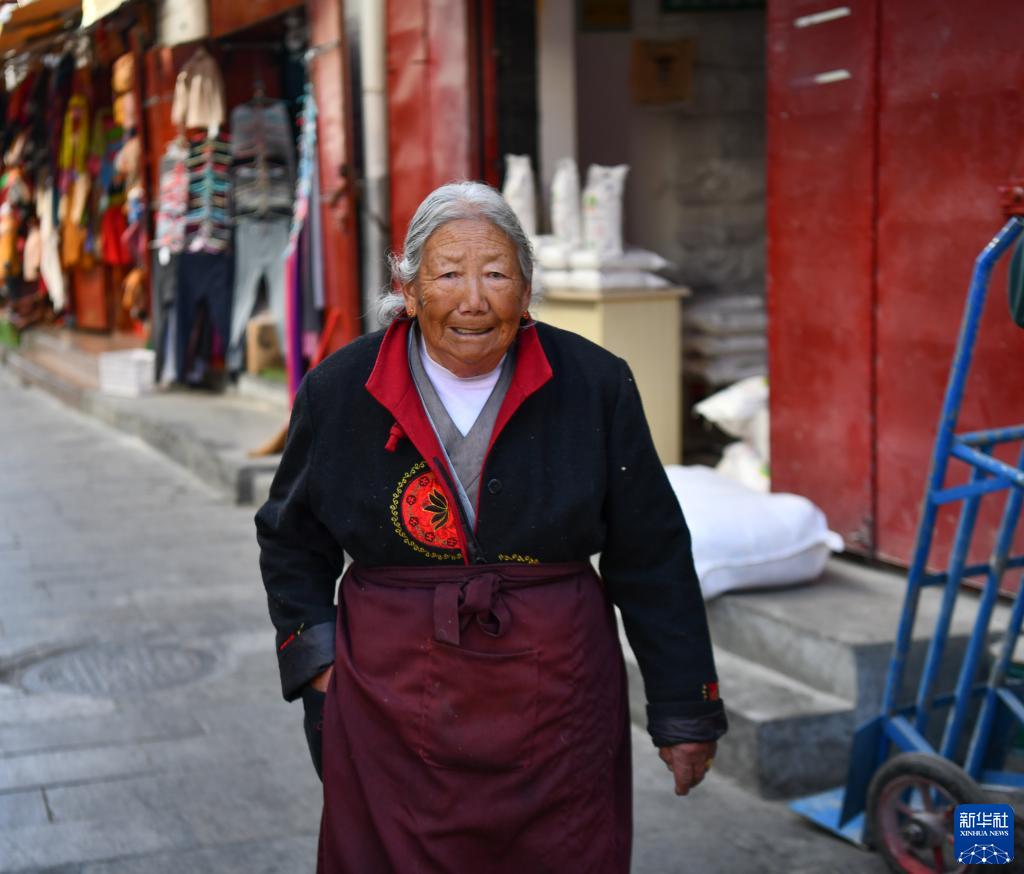 馬昌吉老人走在八廓街老城的街道上(12月7日攝)。新華社記者 晉美多吉 攝
