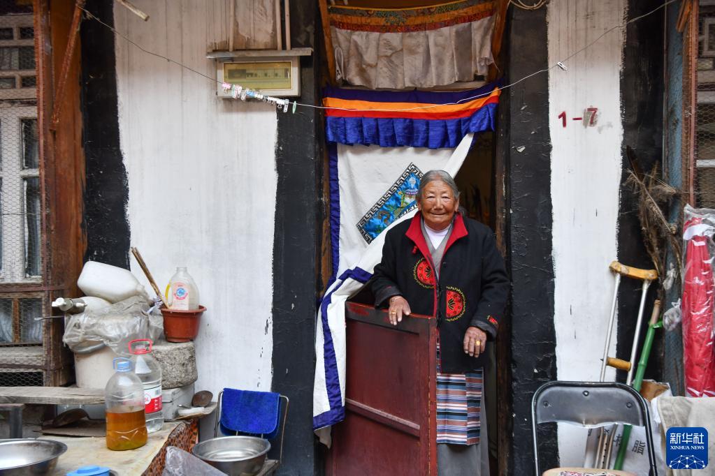 馬昌吉老人在八廓街老城區(qū)的家門口(12月7日攝)。新華社記者 晉美多吉 攝