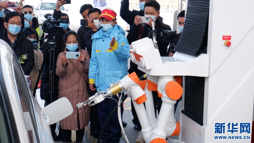 12月29日,加油機器人為汽車加油。伍世偉 攝(新華網(wǎng) 發(fā))