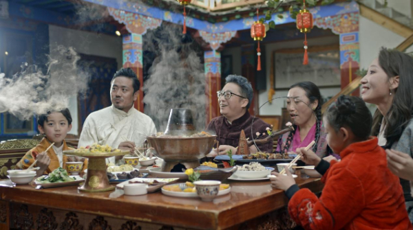 在2022元旦之際,西藏廣播電視臺推出《同心筑夢2022》跨年短片,創(chuàng)新融匯了“溫情故事”、“戲曲新編”、“流行說唱”三種不同的表現(xiàn)形式,以一個團(tuán)結(jié)家庭新年“餃子+酥油茶”的團(tuán)圓飯作為開篇,講述了一個關(guān)于民族團(tuán)結(jié)的溫情故事。