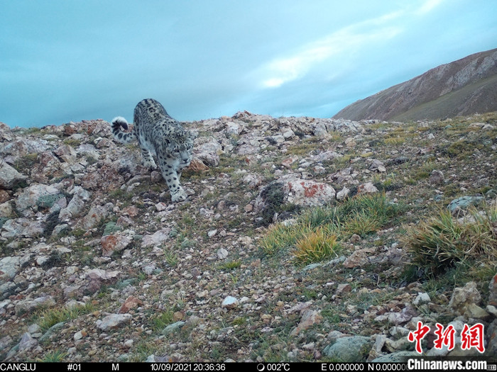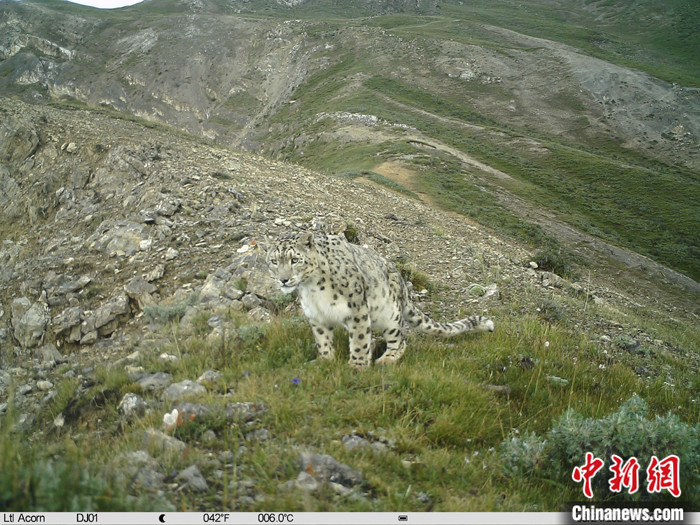 資料圖為2021年8月19日在西藏自治區(qū)那曲市境內(nèi)由紅外相機(jī)拍攝到的雪豹活動影像。 中新社發(fā) 山水自然保護(hù)中心 供圖