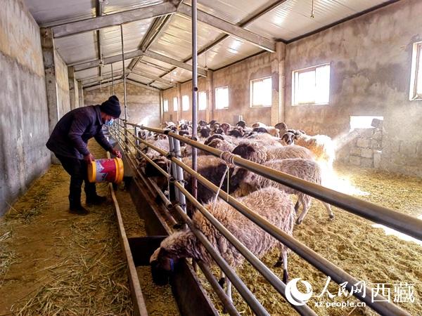 大寒時(shí)節(jié),狂風(fēng)呼嘯。在平均海拔4500多米的西藏日喀則市康馬縣涅如堆鄉(xiāng)藏細(xì)綿羊育肥農(nóng)牧民專業(yè)養(yǎng)殖合作社(簡稱“合作社”),牧民占堆正忙著給上千只羊投喂飼料。他笑著告訴記者:“自從我們這兒開始人工種草后,就建立了合作社,羊統(tǒng)一養(yǎng)在合作社里,冬天再也不用去很遠(yuǎn)的地方放牧了,日子也比以前過得好了?!?/p>