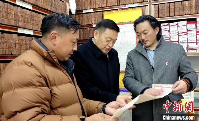 嘎瑪澤登(中)在色拉寺調(diào)研?!∝暽@?攝