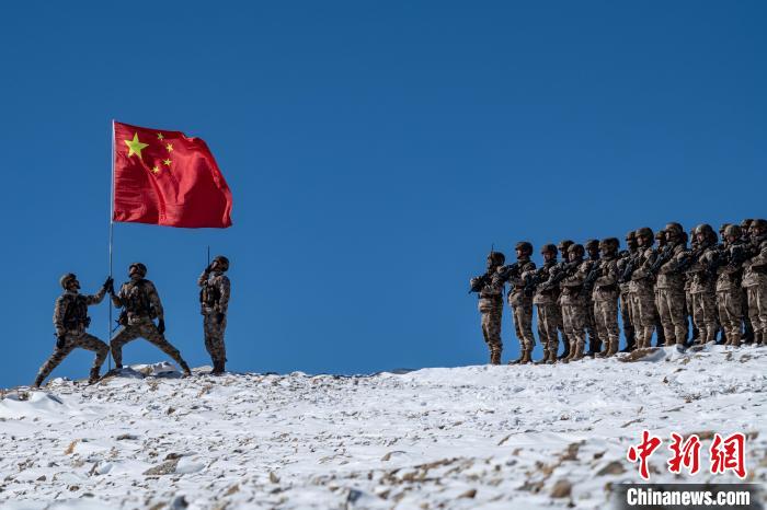 春節(jié),任務(wù)分隊(duì)官兵登上海拔5300多米的雪山之巔,舉行特別的升國旗儀式。望著高高飄揚(yáng)的五星紅旗,官兵們目光堅(jiān)定,向國旗敬禮,唱響國歌。身在邊關(guān),守在一線,住在大山,任務(wù)官兵表示,一定要像釘子一樣,牢牢釘在祖國的邊防線上,邊關(guān)有我在,請祖國放心。