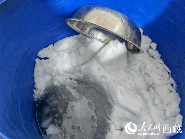 沒有水的日子里,囤雪是常規(guī)操作?!耙煌把┑糜靡惶鞎r間才能化開?;┻€有技巧呢,桶里必須預(yù)留部分水,再放到爐邊才行?!彪m然水管從山下接到了哨所,但冬季氣溫降到零下幾十度,水管結(jié)冰,化雪取水的傳統(tǒng)依然不能丟?!跋匆伦鲲堄玫亩际茄┧?,還是要珍惜?!眻嚎谏谒嚅L文盛高笑著說。