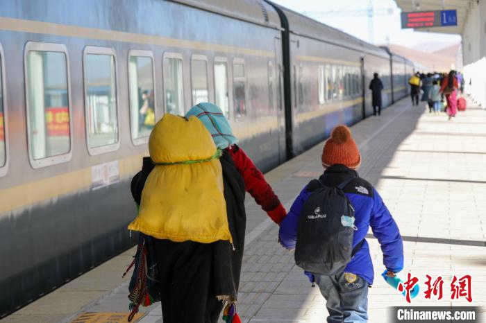 春節(jié)期間,旅客在海拔約4500米的那曲火車站乘車。拉薩車務(wù)段 供圖
