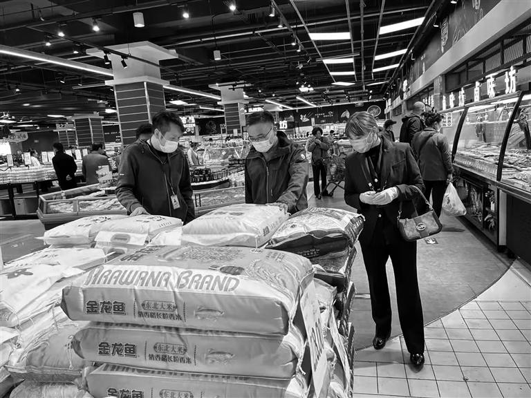 市場(chǎng)監(jiān)管部門執(zhí)法人員檢查某超市商品。圖由自治區(qū)市場(chǎng)監(jiān)管局提供
