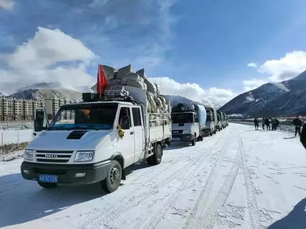 格松達(dá)吉一行經(jīng)驅(qū)車約6個(gè)小時(shí),行程近240公里,7輛救災(zāi)物資運(yùn)輸車安全到達(dá)目的地,兄弟縣鄰近鄉(xiāng)的牧民朋友早已在公路兩側(cè)等候,他們用一條條哈達(dá)、一句句“謝謝”向來(lái)自金嶺鄉(xiāng)的友人表達(dá)敬意和感謝。