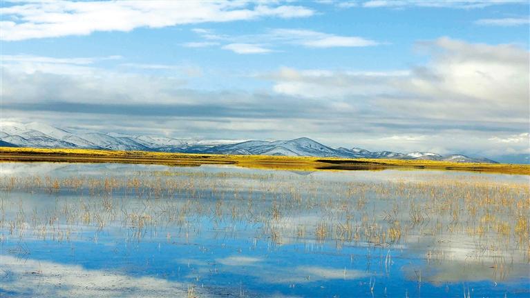 西藏自治區(qū)日喀則市仲巴縣帕羊濕地地處雅魯藏布江上游,該地地理景觀獨(dú)特,是集雪山、沙丘湖泊和草地為一體的綜合性自然保護(hù)區(qū),與湛藍(lán)的天空和變幻不定的白云匯集在一起,構(gòu)成了一幅唯美的生態(tài)畫(huà)卷。
