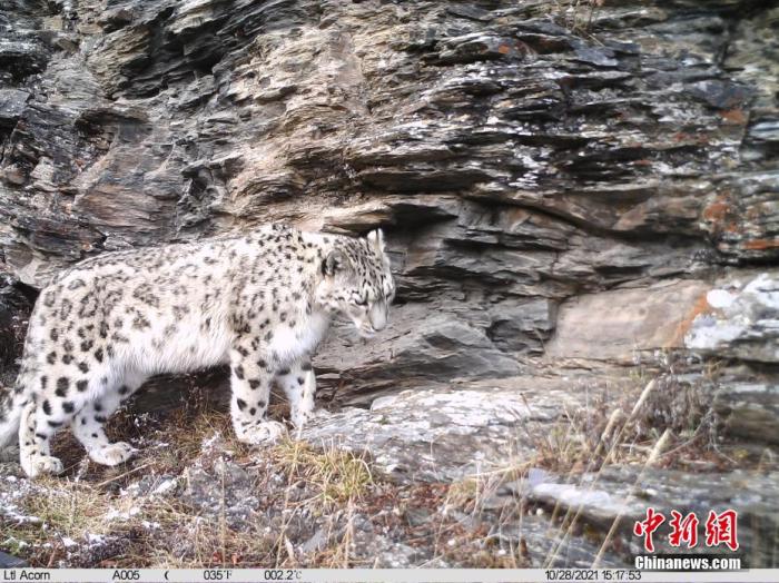 資料圖為2021年10月28日在西藏自治區(qū)丁青縣境內(nèi)由紅外相機(jī)拍攝到的雪豹活動(dòng)影像。 中新社發(fā) 山水自然保護(hù)中心 供圖